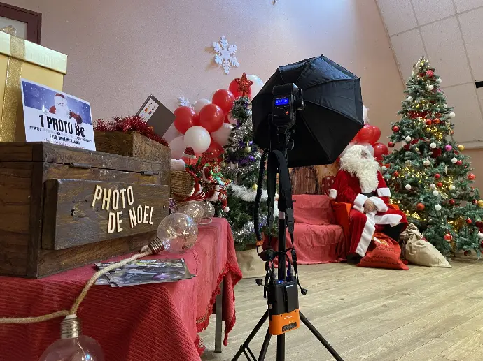 Pour la période de Noël j’offre ma prestation de photographies avec un décor de Noël, avec un sans Père Noël (non fourni, souvent un bénévole de la commune dans la plupart des cas).